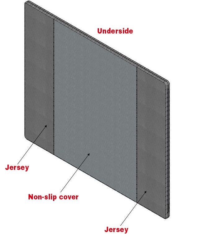 Diseñada especialmente para el salto hemos cambiado la parte inferior y ahora está confeccionado en jersey en los laterales con una funda antideslizante en la parte central. El objetivo es mejorar la estabilidad de la colchoneta durante los entrenamientos y las competiciones.